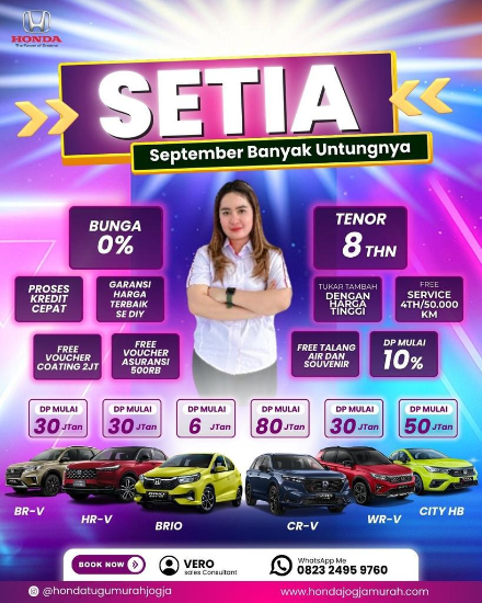 Cuma pakai Promo Honda Jogja Disini, Anda bisa mendapatkan tawaran kredit dengan tenor sesuai kebutuhan dan dp minim banget.